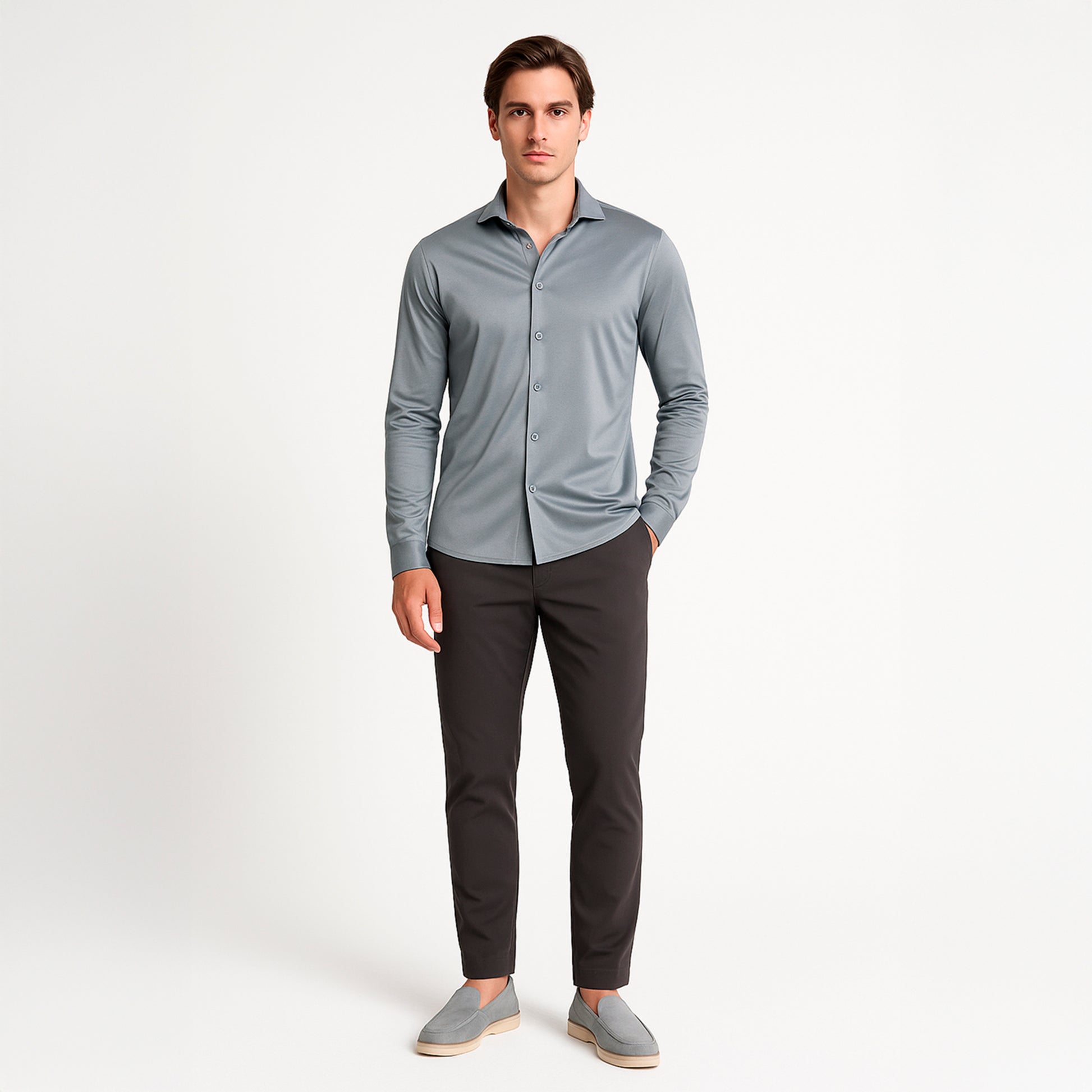 Dit prachtige bruine glanzende overhemd is perfect voor modebewuste mannen. De slim fit pasvorm zorgt voor een gestroomlijnd silhouet dat flatteert en comfortabel draagt. Gemaakt in Italië met hoogwaardige materialen en vakmanschap, is dit overhemd duurzaam en luxe. De glanzende afwerking geeft een chique uitstraling aan de diepe bruine kleur. Geschikt voor elke gelegenheid. Onze overhemden kunnen casual gedragen worden met jeans, of elegant met een pantalon en nette schoenen. Ongeacht de stijl, dit overhemd trekt zeker de aandacht en laat je opvallen.